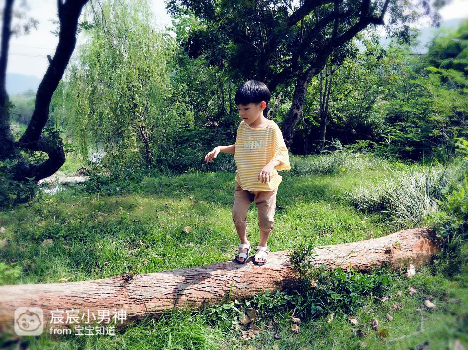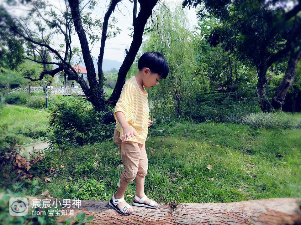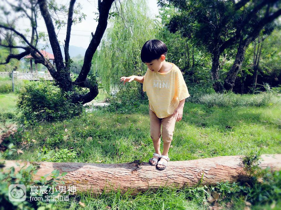 不知道会不会有人带孩子这么玩,但我脑海中的第一个念头就是让他试试这个“独木桥”,和我想象中的一样,他既有点害怕又感觉特别开心的样子特别的天真可爱