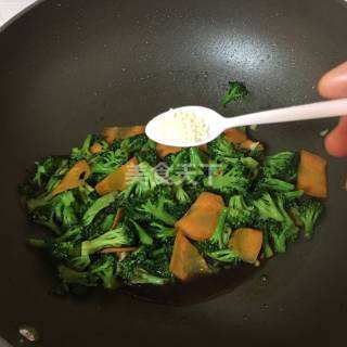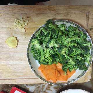 “ 清淡可口!儿子最爱的蔬菜 ” 新兰花 1颗 胡萝卜 半个 蒜蓉 1块 盐 1匙 海鲜生抽 1勺 鸡精 1匙