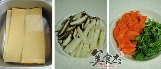 1. 干豆腐皮入清水中浸泡半小时左右至软