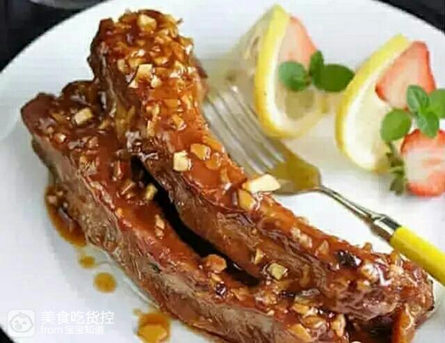 食材:排骨400g ,生抽2勺,白糖,朗姆酒10m,盐,叉烧酱2勺,大蒜