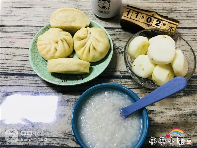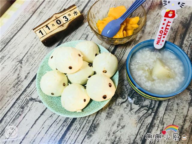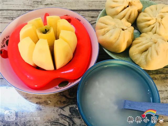 周五:山芋粥,豆沙小包(超市买的),水果。