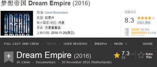 2个宝宝 LV.24《梦想帝国》于2016年底在荷兰上映,全片73分钟,豆瓣上获得了8.3分,IMDB上7.3分,对于一部纪录片来说,它算不上优秀,