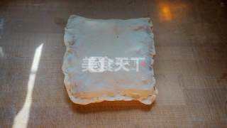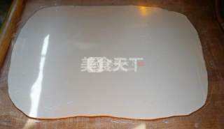 6 取其中一个面团,擀成厚约1毫米的长方形面片