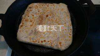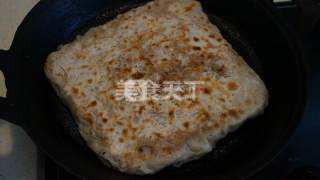15 盖盖子瓦蛋,小火将两面煎得焦黄,可点少量清水在锅中,使饼受热均匀而且不会变得太干太硬,5分钟左右时,可出锅