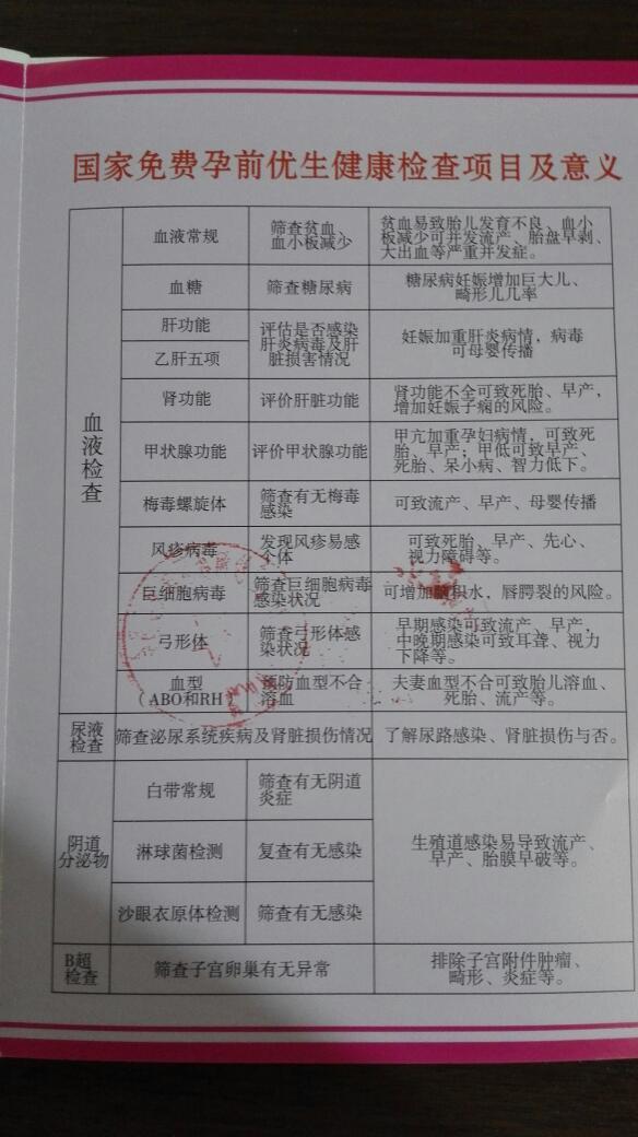 为射蒸了实现优生优育,国家从堡高柿2013年起推出免费孕前检查政策。检查项目大概1000元左右唤们,如图: