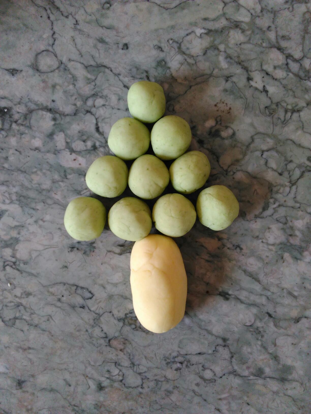 3个宝宝 LV.19将面粉一分为四份,预计有白色,深绿色,黄色,草绿色