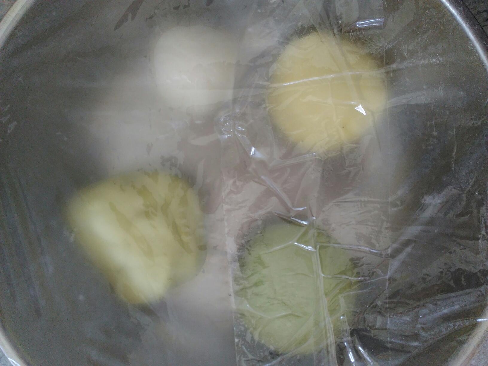3个宝宝 LV.19把搅拌好的蔬菜泥加面粉中,自揉成面团,用保鲜膜盖上发1个小时