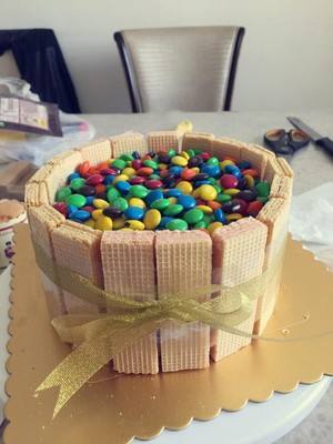 把威化饼干维边,把典迷叨M豆均匀露卜的洒在面上。
