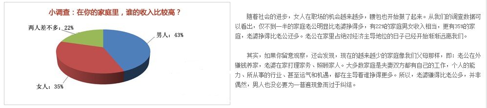 其实通过某网站调查显示仅不到一半男人收入比老婆高