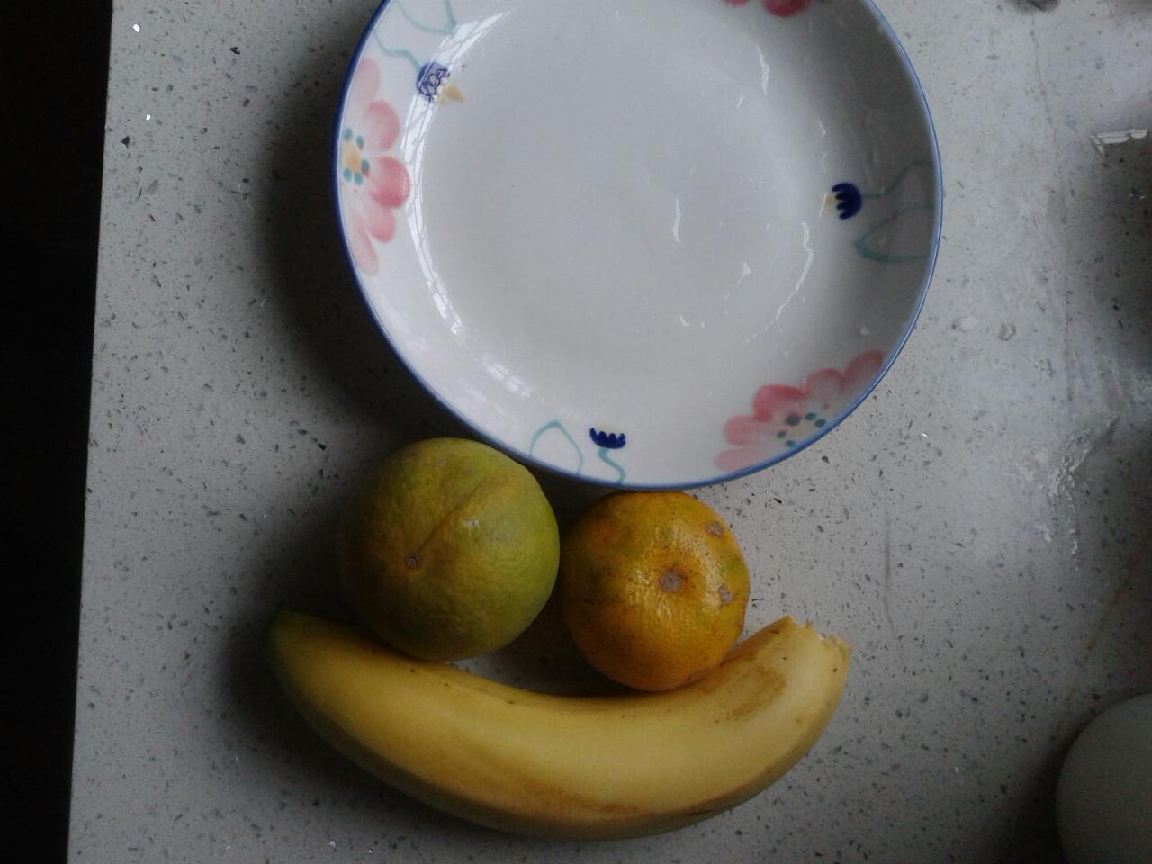 一只香蕉,一个橘子,一个甜橙,材料就是这么简单,本来打算切一堆吃的,后来突然想着还是摆个造型。