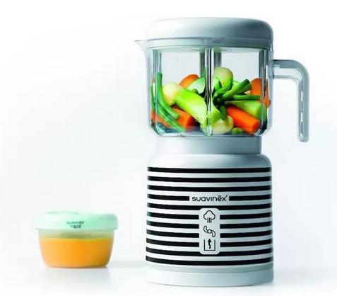 优点:同样搭配蒸篮,这款的设计出了蒸煮还可以做奶瓶餐具的消毒锅使用;随主机配有一个食物抽真空盒,可以把多做出来的辅食储存起来,这是比较特别的一点。