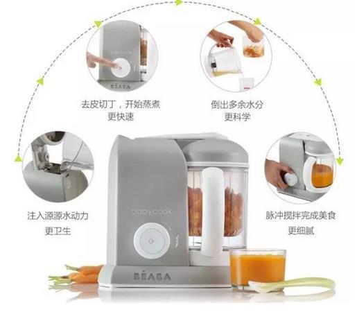 这个法国牌子备受中国妈妈追捧,很多明星妈妈也在用,问了一下在法国的朋友说在法也是蛮受欢迎的。 优点:集蒸煮、搅拌、解冻与加热四大功能于一身,一键式操作十分便捷;分体式设计,方便排除多余汁水,有助于避免小宝宝消化不良;噪声比较小,清洗也十分方便,用过后水一冲就可以了。 特别说一下关于手动搅拌的问题,很多妈妈觉得这个不是全电脑控制是个缺点,我反而觉得手动控制按钮可以控制食物磨碎的粗细程度,更适合咀嚼和吞咽能力的发育。