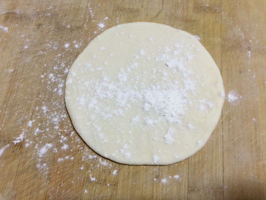 取一小块用擀面杖擀成圆形,