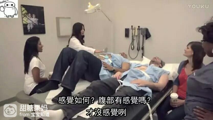 准备就绪后,医生先给两人体验了一下很轻微的收缩,大概就是我们平常来大姨妈的那种感觉,两个男人傲娇的表示,还好,没啥感觉啊。