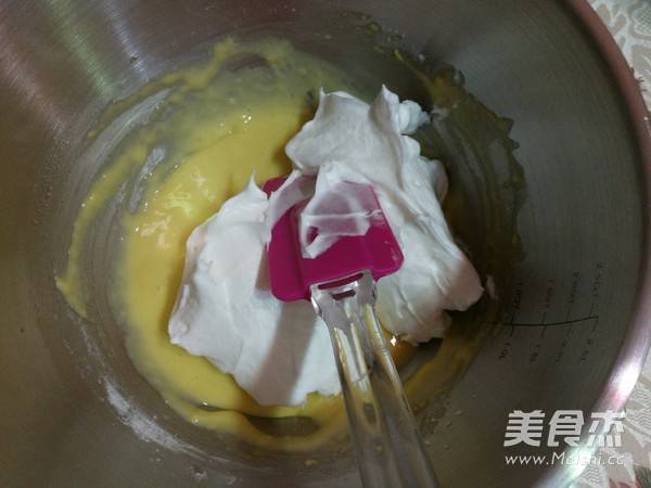 9. 将三分之一蛋白放入蛋黄盆中