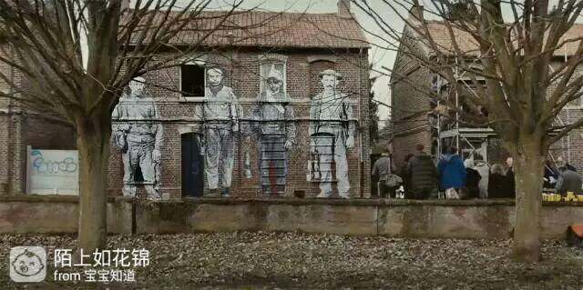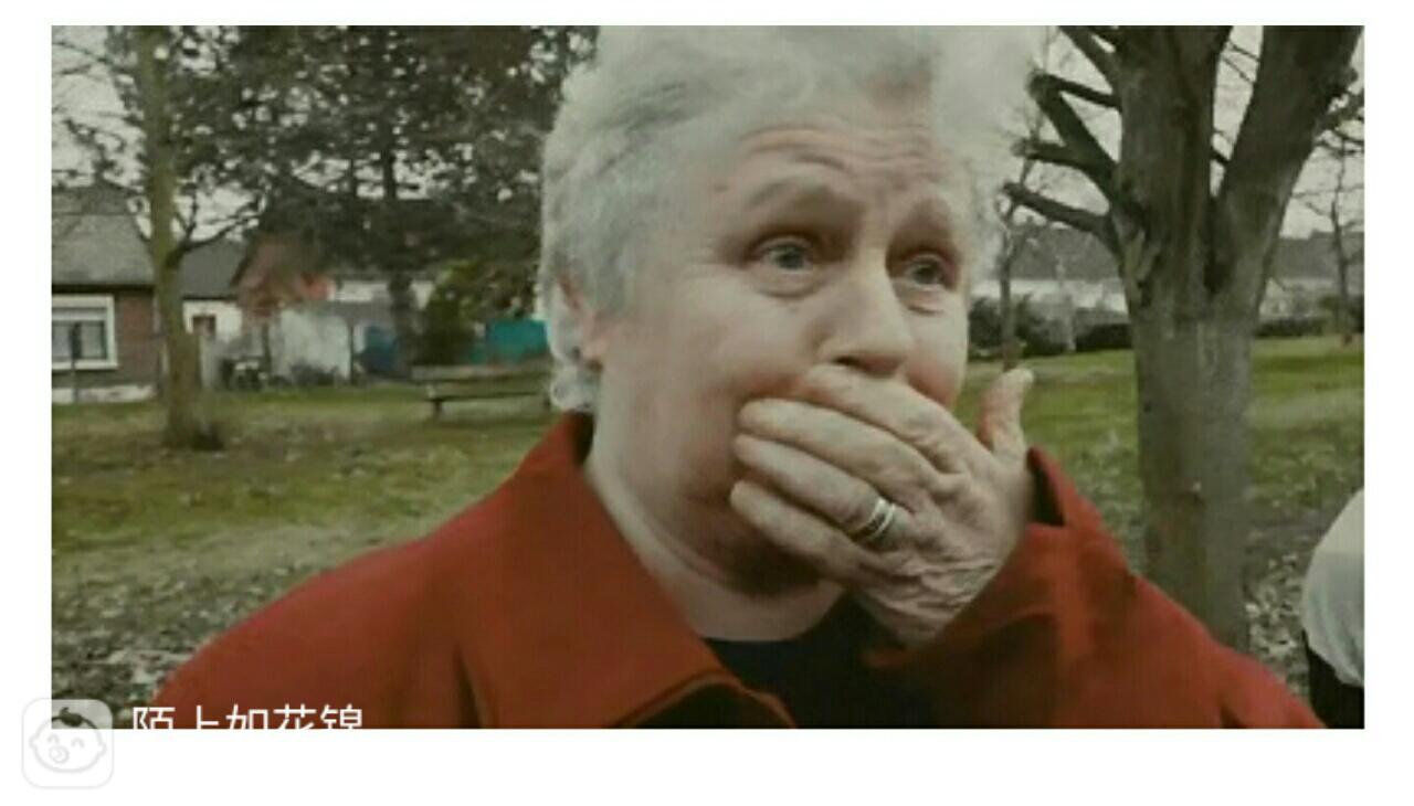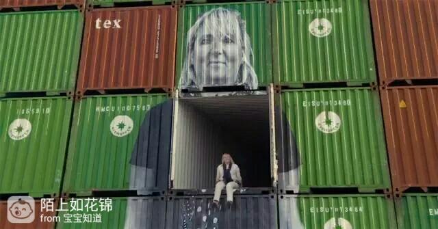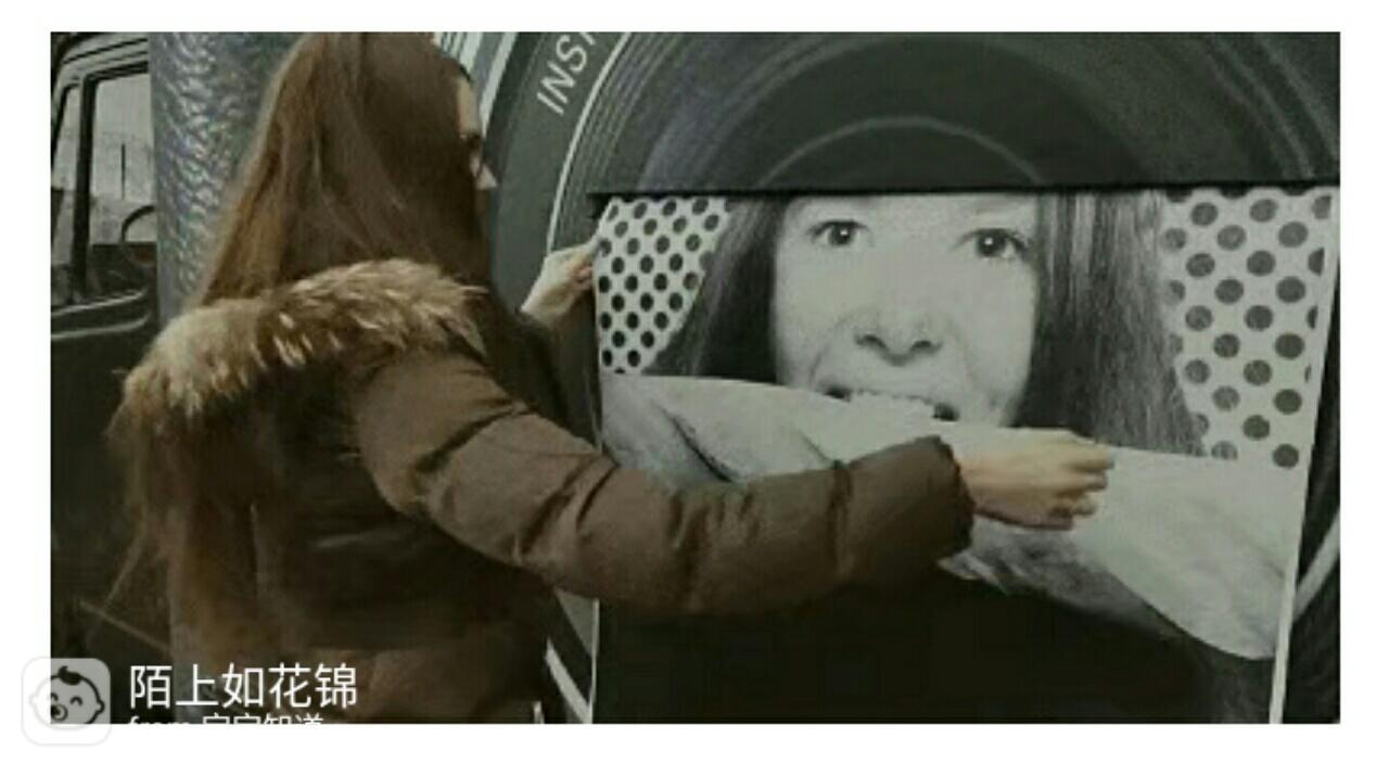 她第一次见到贴了自己照片的房子时,表情是这样的。