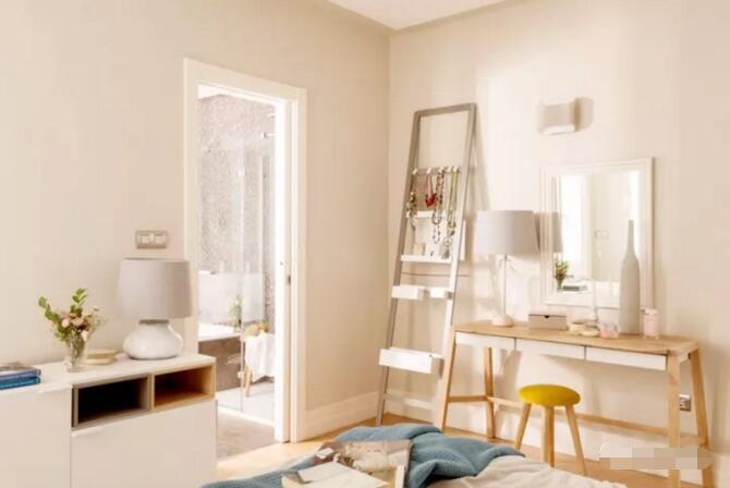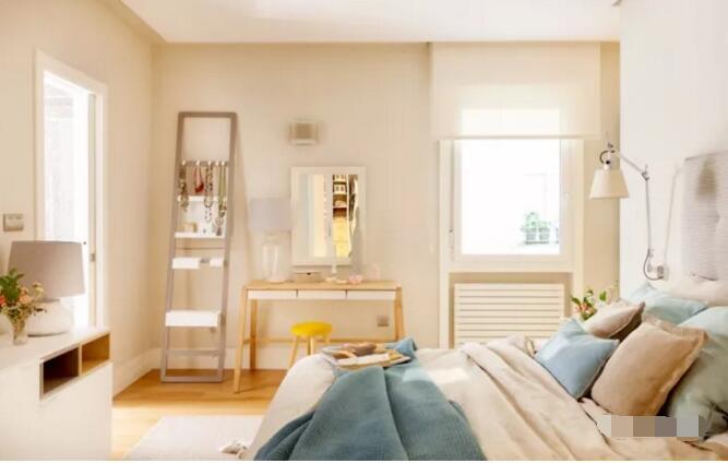 卧室的一侧是女报实录主人的梳妆台,鲜黄的座椅调亮了整体空间的色彩,另外利用根据梯子改造的收纳柜放置项链等首饰,更加巧妙富有创意,每一件搭配的家具都通过精心的规划满足了这间舒适风的住宅。