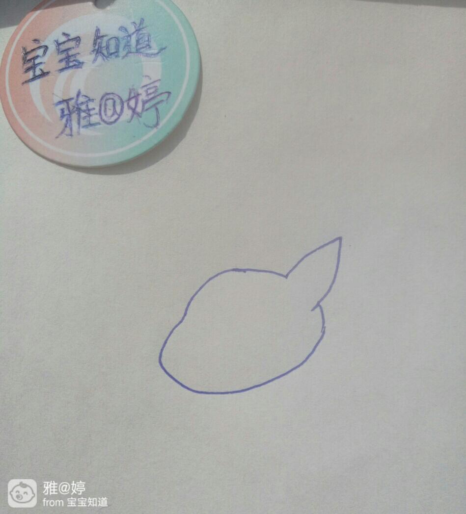 第一步 画狗狗的头的轮廓和一只耳朵,因为狗狗的嘴要长点,所以要画一个凸出来的部分。
