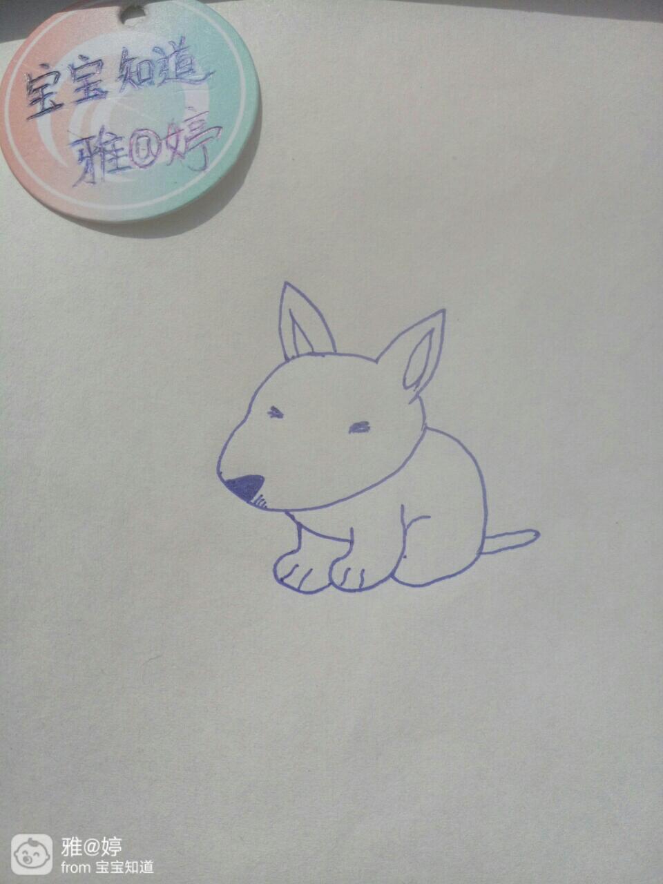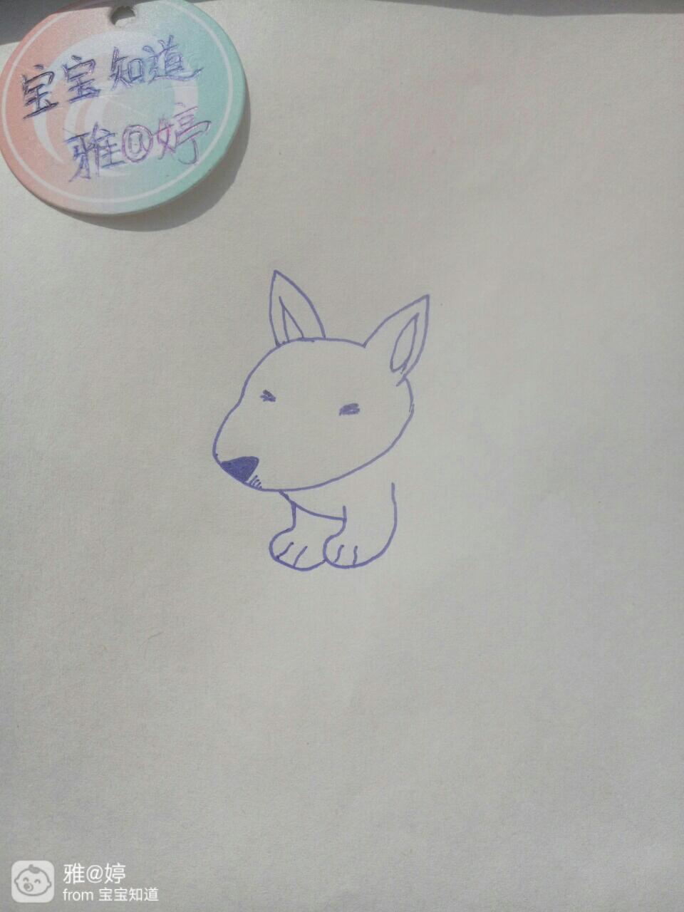 第三步 画狗狗的两只小眯缝眼,两条短小的线条就画出了狗狗的眼睛。