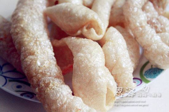5. 猪皮就炸好啦院昌!拿来煮之前,用清水浸泡变软,丰险捆切小块后就可以拿来炮制美味啦