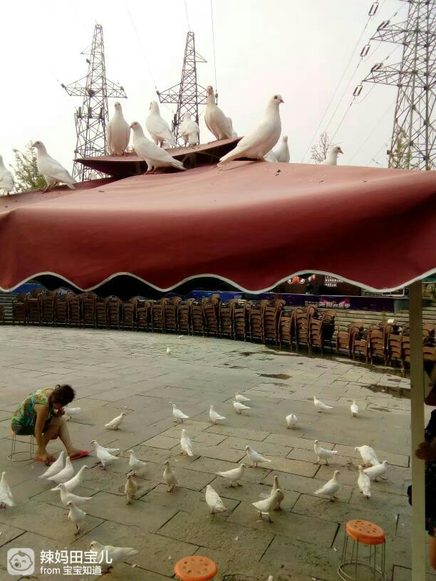 再往里走有放鸽子的,鸽子喂食的话可以十块钱买一袋食给它们喂,有的鸽子自然会跑到你手上来,有的干脆跳到你肩上,和你开起来玩笑,很有意思!