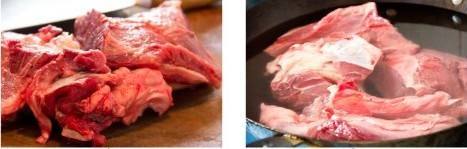 煮驴肉的做法 1. 将驴肉斩大块后放入锅中,注入没过肉的清水,大火煮沸后撇去浮沫