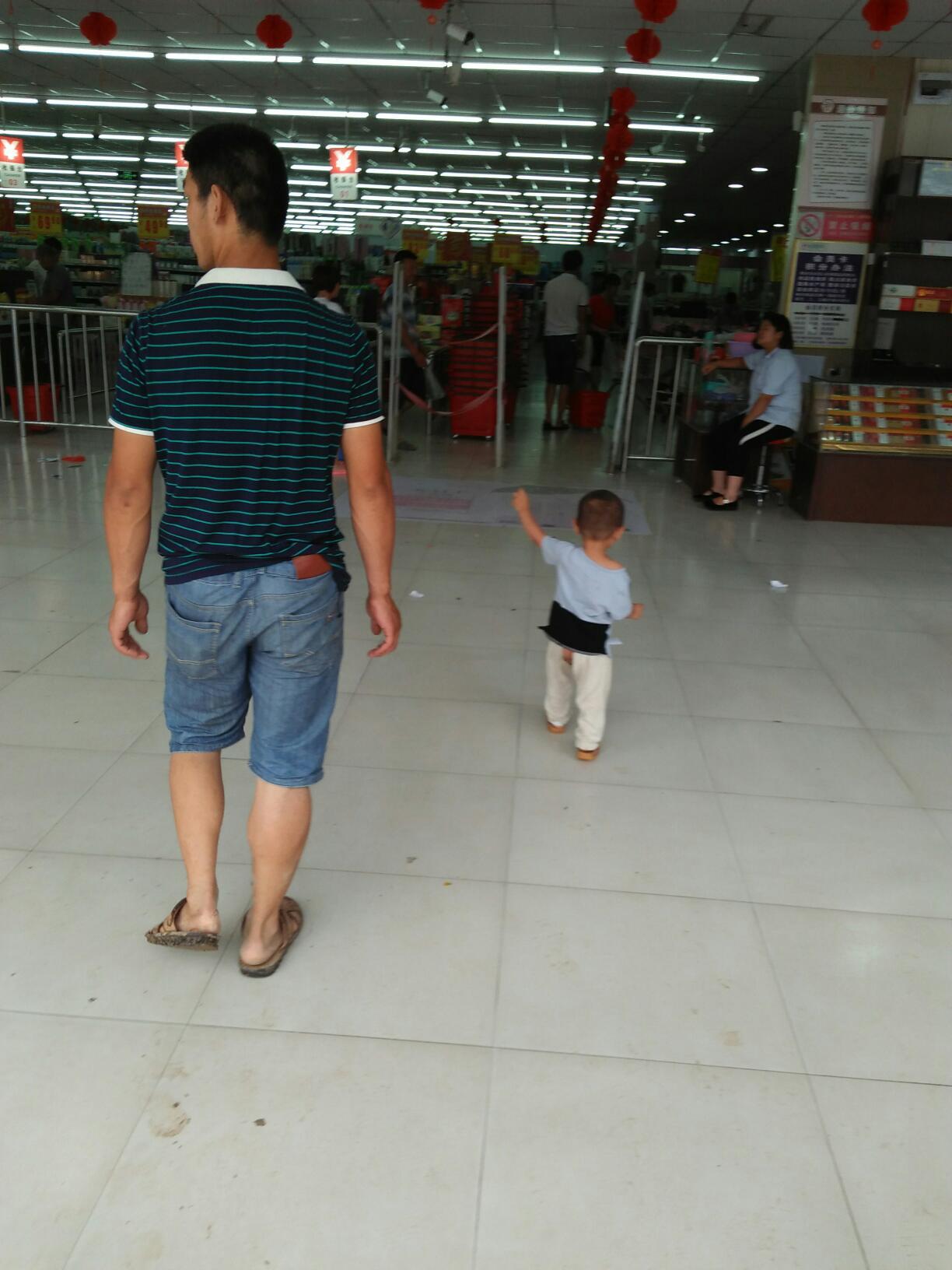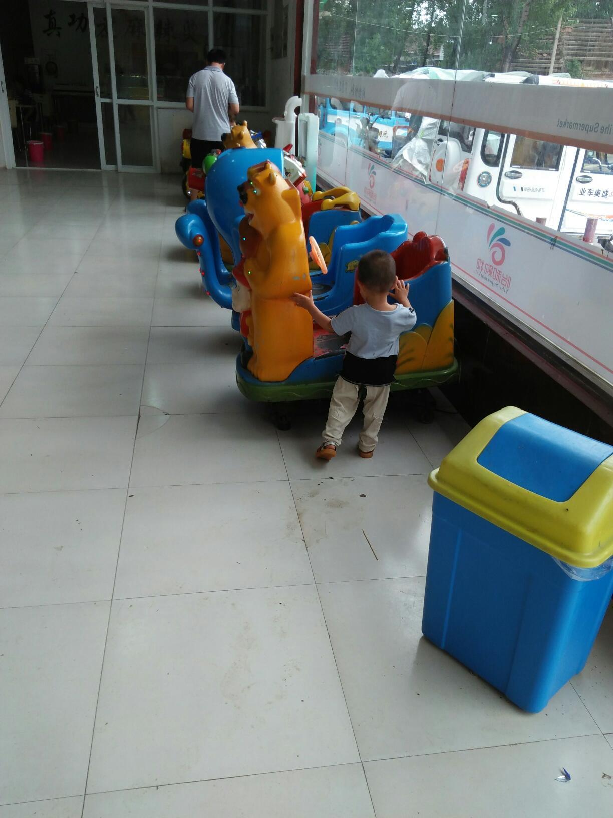 刚从车上下来,二宝特别兴奋,也不管地上有水,自己迈着大步就往超市里走,可刚进超市糕实狼,他就被摇摇车给吸引了注意力,也不管我们的态度,自己就去了摇摇车那里,还特别厉害的自己爬上了车,玩的特别起劲,后来还是老公强行把他抱走的。