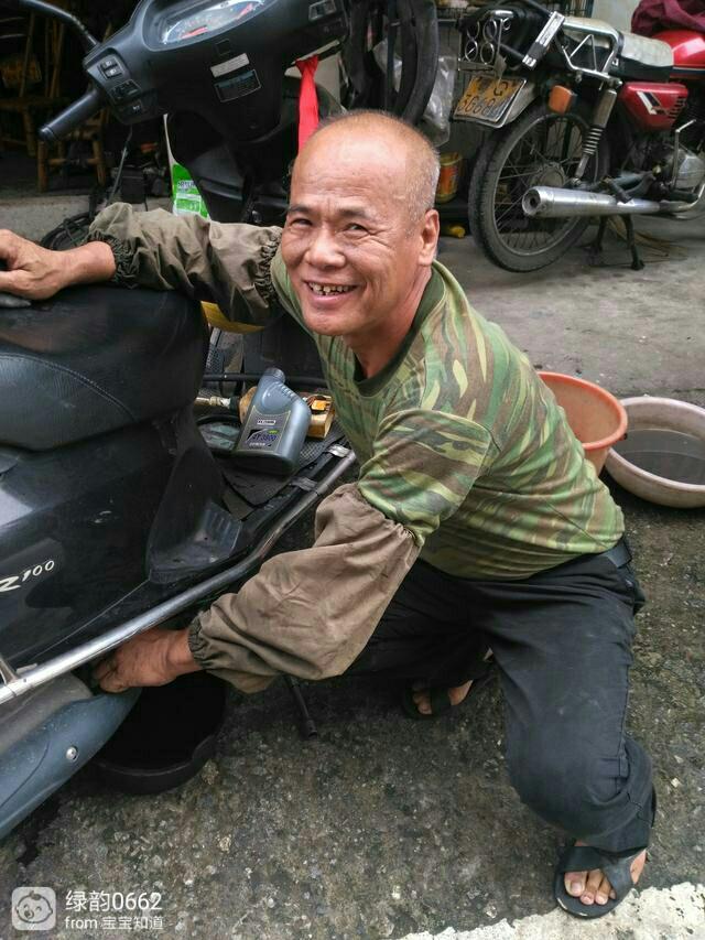 在阳江市金郊水果批发市场东面入口路侧,有一块不显眼的牌子: 国叔修理悟勒摩托车……店子不大不够10平方米,然而,年近花甲之年的国叔修理摩托车已做了近40年。以热情服务,信誉至上的宗旨赢得了一方人的信赖,为自己撑起了一片蓝蓝的天空。