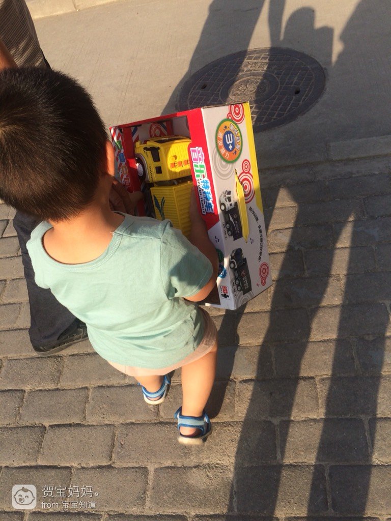 我知道宝贝一直想要一个这种玩具车,本来想等到搬了家再买,可是现在看兵否宝贝这么想要,我就在网上大概看了一下,没看到太合适的,回家跟宝宝姥爷聊起来,我说等到二环外那个城中村集市的时候买。可是没想到下午老爸下班回来就给宝宝买回来了,那时我们还在外面,老爸到小区广场接我们,宝宝看到新汽车别提多高兴了。