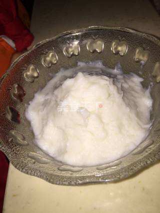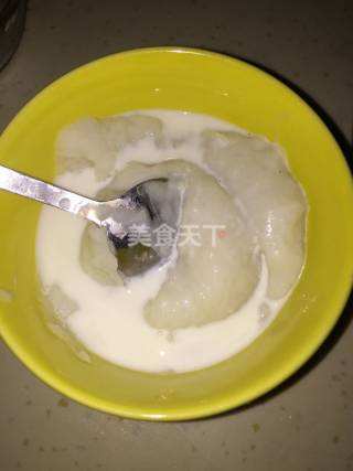 2 将山药压成泥后放入牛奶搅拌均匀