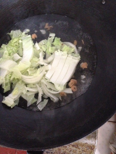宝宝11岁10个月28天 LV.8这个时候水开了,放入小虾仁、放点油