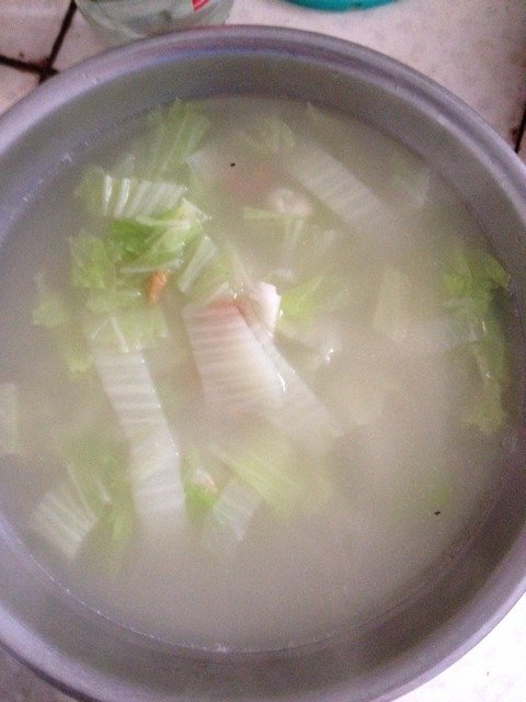 宝宝11岁10个月28天 LV.8趁着烧水的空档小虾仁那个小盘子用水浸泡一下。大白菜洗干净,切成这样的形状!