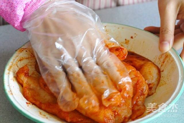 2. 放入奥尔良烤翅粉、生抽腌制1小时(要想更入味可以提前一天晚涌搁上准备,放冰箱腌制)同时将米放入电饭锅煮熟。