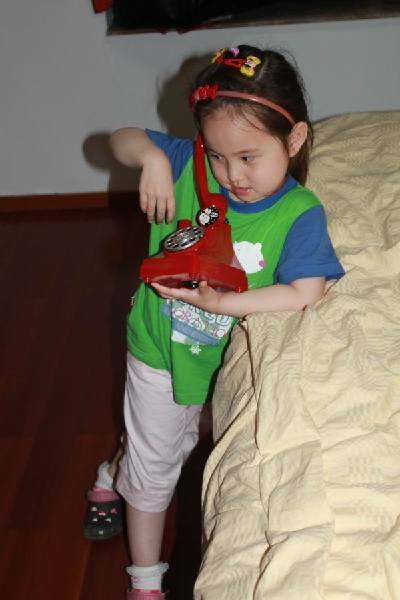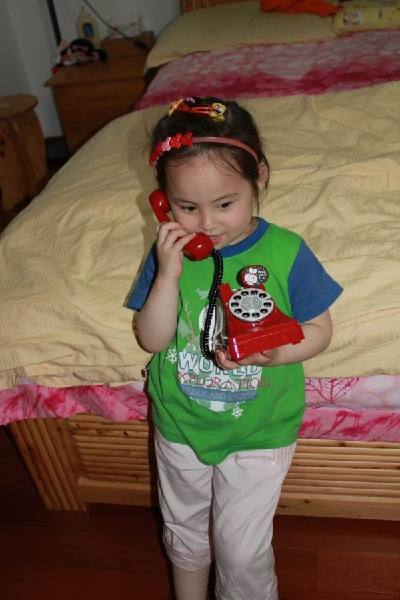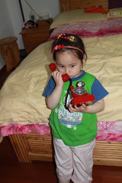 前段时间微信上中了卡通储蓄罐,今天有空过去拿一下,是一个电话机样子的储蓄罐,还是红色的。呵呵,这个好,小妞肯定喜欢的辉狗侨,又可以存硬币,又可以当她打电话的玩具,一举两得可谓。带回家去,果然小妞喜欢。赶紧拆开来看,从小妞笑开花的小脸上足可见她对这个新玩具的喜爱程度。拆好后,她立府今马模拟开始打电话了,第一个打给亲菜爷爷奶奶,第二个打给爸爸,第三个打给大姨,玩的是不亦乐乎。