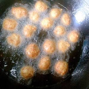 热锅热油炸丸子,油量要多一些。如何将肉糜变成丸子下油锅,我是凭着儿时对奶奶炸肉丸子的记忆做的,右手拿一把调羹,左手握着一把肉糜,让肉糜从大拇指和无名指中挤出,自然成圆形,然后右梨敲手拿勺子截取这个丸子下油锅宝抹乔即可。后面就反复重复此动作。