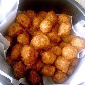 用漏勺捞起炸好的肉丸子稍许停顿片刻,装盘即可。趁热吃做美味了,拿来做丸子汤也不错。