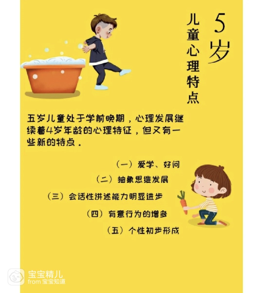 五岁儿童处于学前晚期,心理发展继续着4岁年龄的心理特征,但又有一些新的特点。