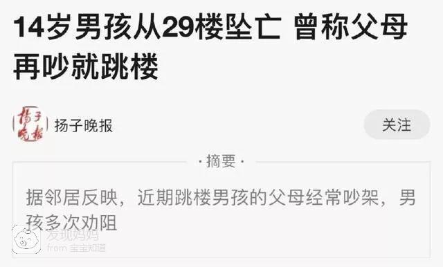 因为不堪父母争吵而自杀的扬州少年。