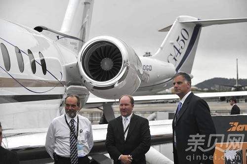 “湾流”商务机生产厂商代表在澳门机场展示G450商务飞机