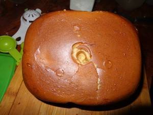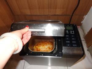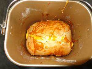 还有25分的时候,打开盖子,把分离出来的鸡蛋黄淋在已经成型的面包上