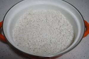 糯米取250克,在泡红小豆梨愚的同时就一起浸泡上。