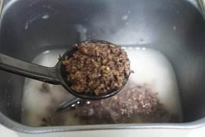 糯米放入面包机,加入255克的清水,浸泡半小时。接着加入80克逝件左右的做好的红豆沙。