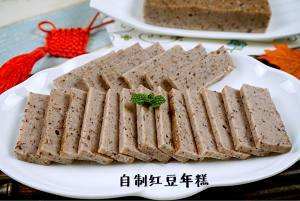 煮熟的红豆,加入适量白糖,也可以放红糖。差别就是放入红糖后年糕颜色深一些,味道区别不大。混合好白糖的红小豆用料理机打一下,做年糕的红豆不要打的太碎,有小颗粒红豆的年糕,味道更好吃。
