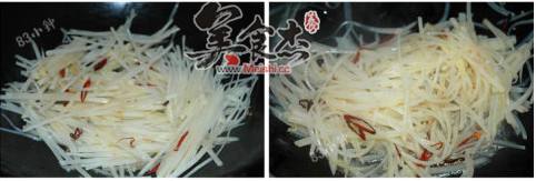 4、炒酸辣土豆丝,我比较喜欢清脆的口感,一般断生后就会起锅。你可以根据自个的点潜爱好,适当延长炒的时间。
