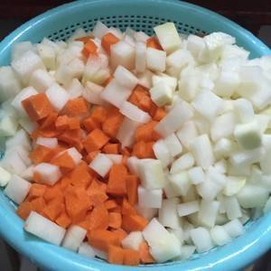 用料 undefined 有无截婚炼这次我买的芥兰头比较大个,所以我只切了一半。首先把芥兰头和红萝卜切粒