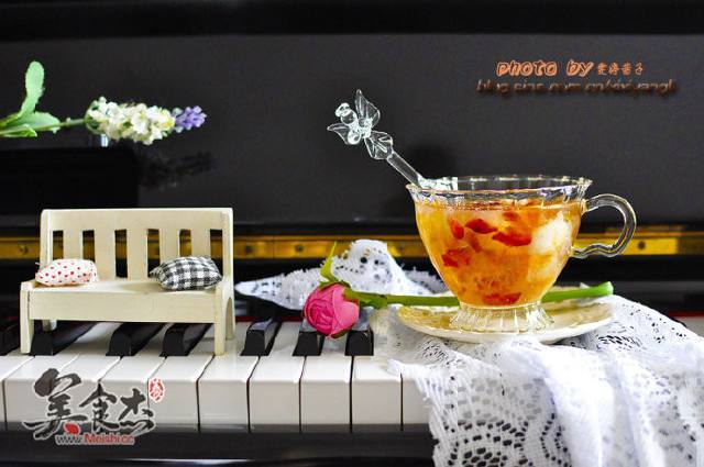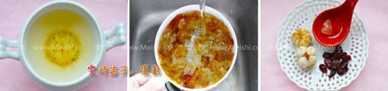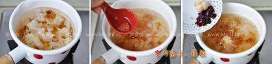 8. 快关火时放入蔓越莓调味,使这道甜品又有些酸甜口感,适合秋季“吃酸,护肝胆”的养生原则。