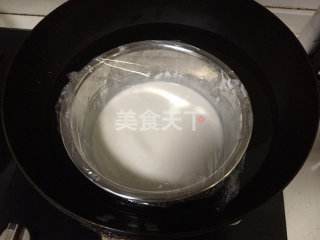 3 包上保鲜勒玻昌膜,入锅隔水蒸熟