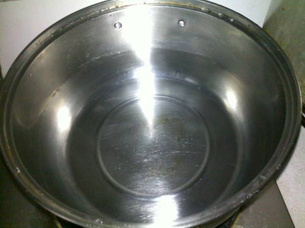 玉米羮的做法 1. 1500ml水放入锅中,开火。