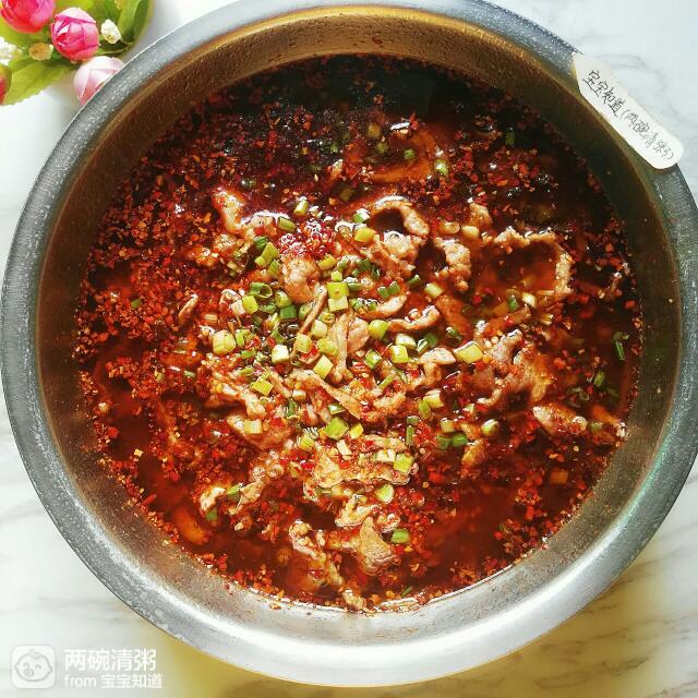 这道菜是水煮肉片,里面的菜是藕片,脆脆的辣辣的很是开胃,肉片我用的是猪肉,去晚了没有买到牛肉,做水煮肉片最好用里脊肉,做出来的肉片才会嫩嫩的,这就是我的晚餐,你吃的什么呢?
