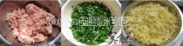 4. 将大白菜、香菇、黑木耳、韭菜、笋切成细小的碎末,加入肉馅中,搅拌均匀即可。出来的肉馅美味无比哦